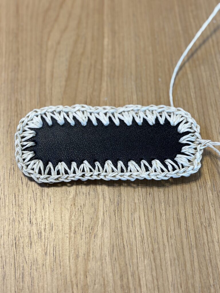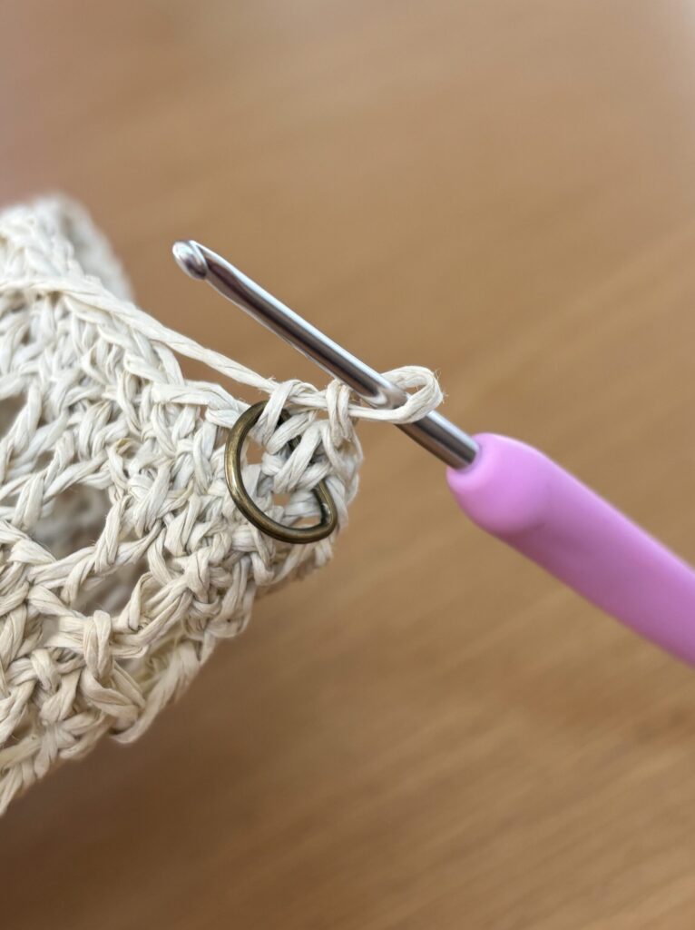 私は「1、2、3目め」と「29、30、31目め」に細編みと共に編みつけました。